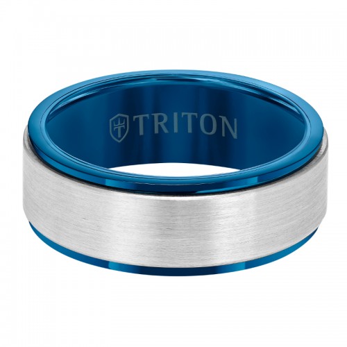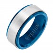 8MM Blue Tungsten Carbide Ring - Satin Finish Center and Step Edge