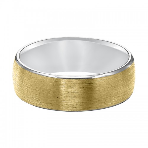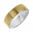 It is all in the details with this luxuriously designed two-tone gold Comfort Fit wedding band featuring a satin finish with rolled edge