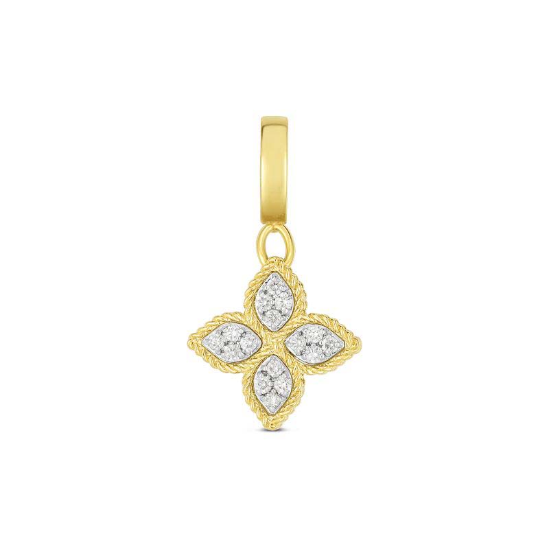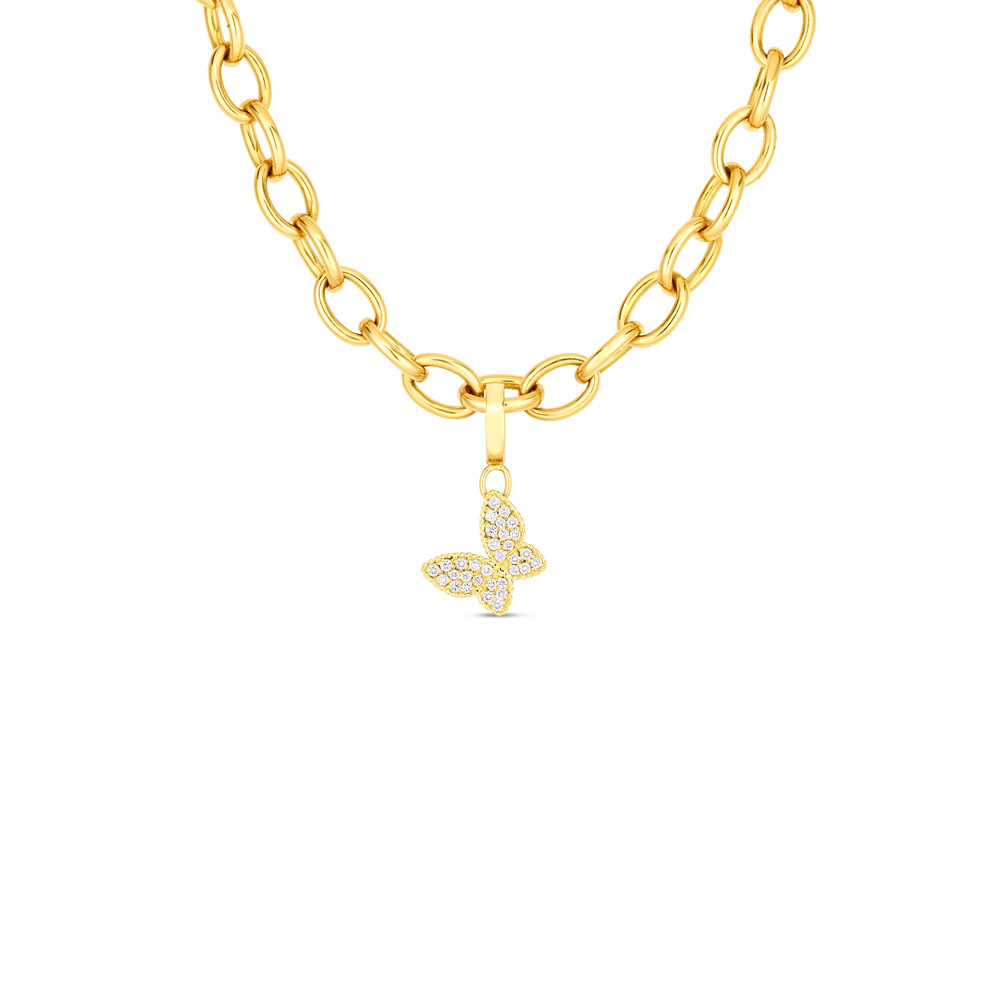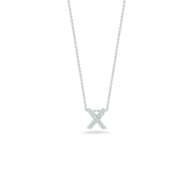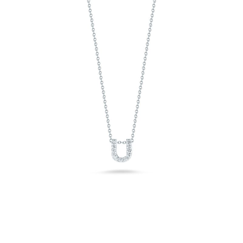 Roberto Coin Tiny Treasures 18k white gold small diamond small Palm Tree pendant 18 inch necklace set with approximately .25 carats of diamonds.