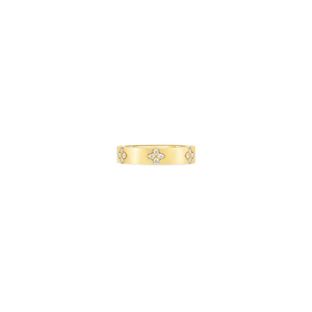 18K yellow gold small band ring with brilliant cut diamonds. Inspired by the delicate shape of the Lunaria flower this Lunaria diamond ring is hand hammered and hand engraved by Italian artisans. Total diamond weight: 0.14 ct.